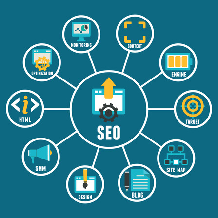 Flat concept of seo process